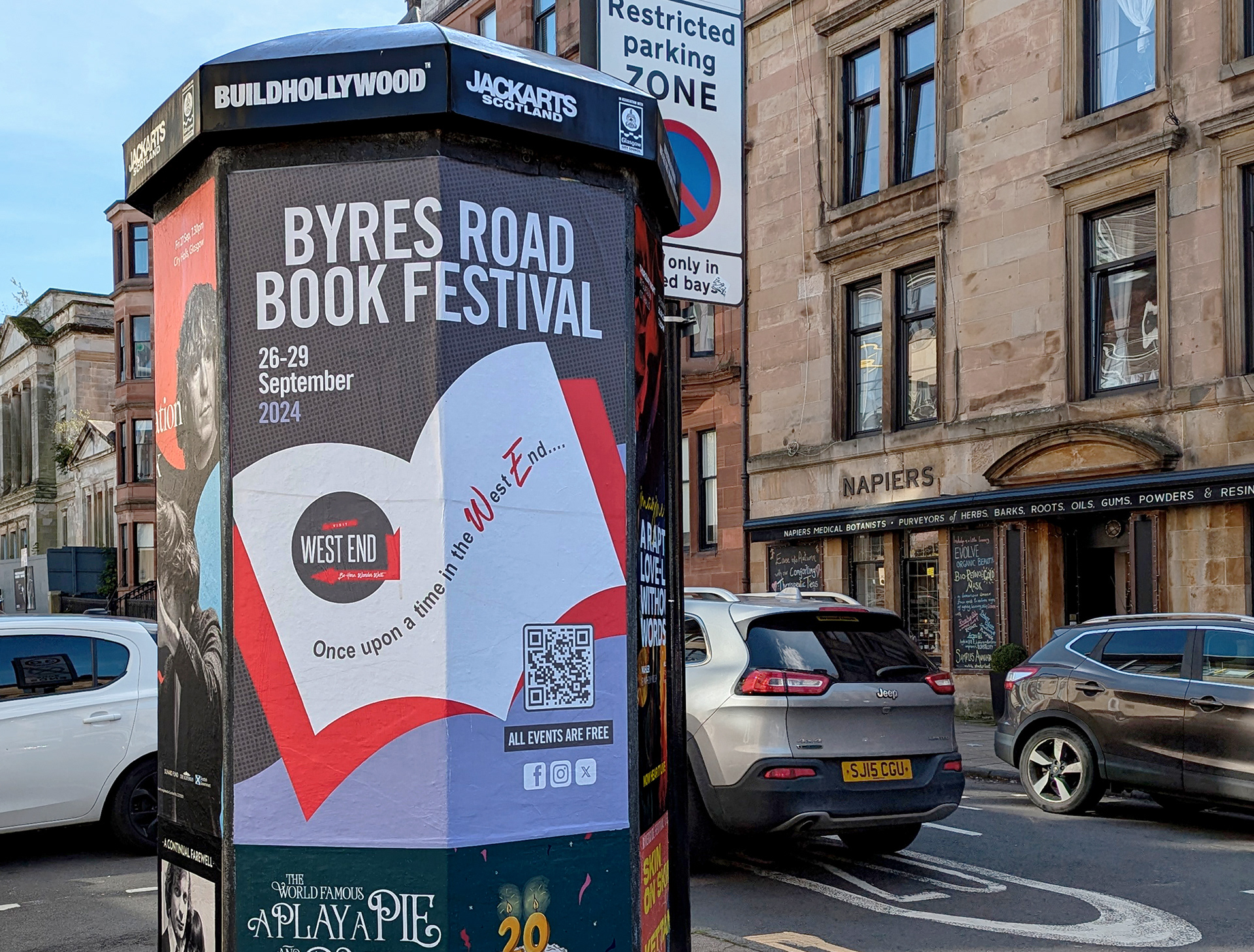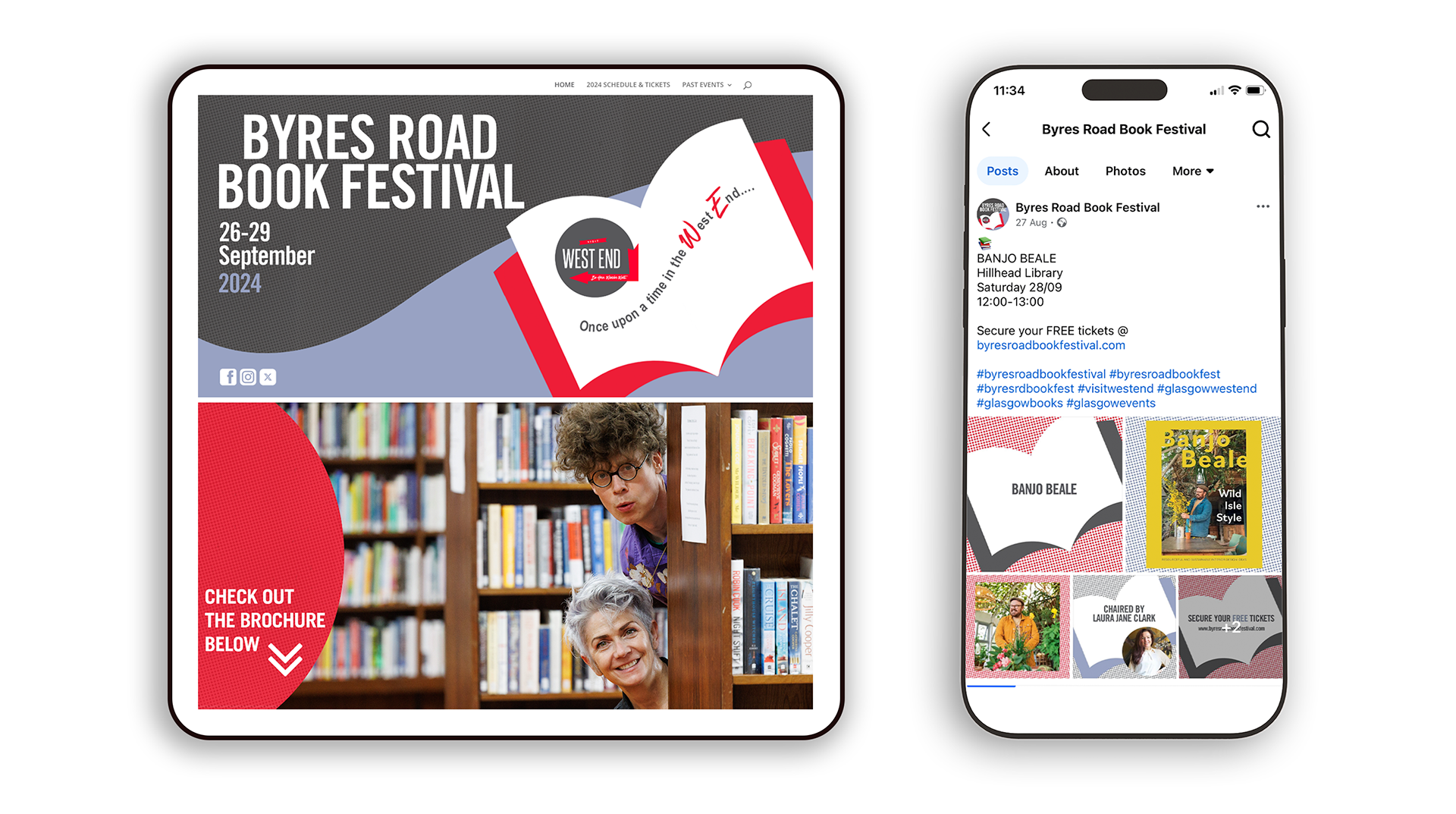 In 2024 I rebranded the Byres Road Book Festival for the Byres Road & Lanes Business Improvement District (aka Visit West End), developing a recognisable and cohesive identity that translated seamlessly across both print and digital platforms.